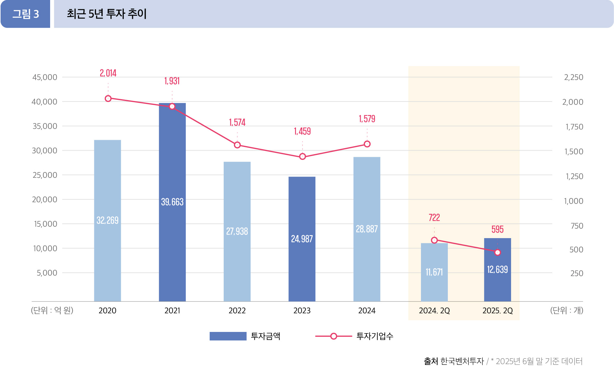 2025년 2분기 누적(1월~6월) 기준 595개 기업에 총 1조 2,639억 원이 투자되었다.