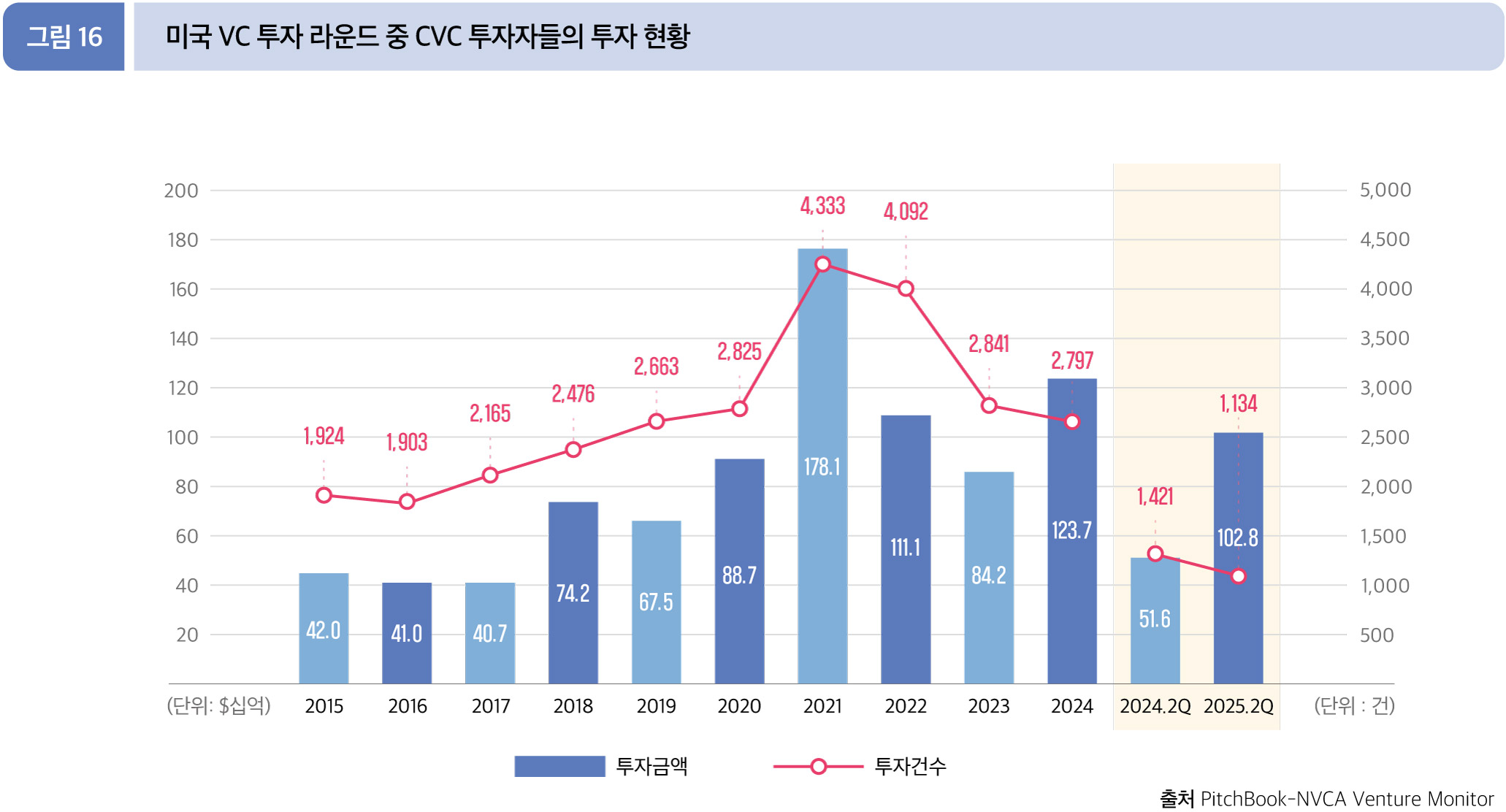 2025년 2분기 누적(1월~6월) 주요 비전통적 투자자 중 하나인 CVC 투자자들은 1028.2억 달러(1,134건)의 거래에 참여했다.